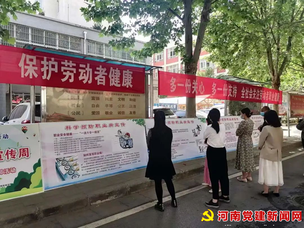 河南党建网讯(王爱民 李西锋 通讯员 赵苗苗)今年4月25日至5月1日是第20个职业病防治法宣传周,为深入宣传《中华人民共和国职业病防治法》,进一步推动用人单位落实职业病防治主体责任,切实保障广大劳动者职业健康权益,结合能力作风建设年工作要求,洛阳伊滨区诸葛镇以“一切为了劳动者健康”为主题,开展了形式多样的宣传活动。