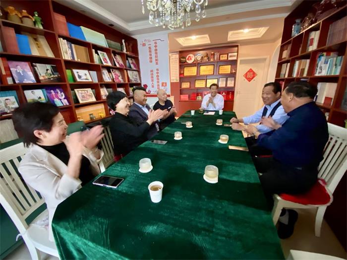 中国少林书画研究会顾问、“全国离退休干部先进个人”、“郑州市百姓宣讲团宣讲员”、“郑州市第一批岗位学雷锋标兵”康玉庆同志的工作室,请他辅导我们学习,机会难得,请大家认真对待。接着他介绍了康玉庆同志的先进事迹,大家观看了康玉庆的人生四立工作室的写作间、藏品室、藏书厅、阅览厅、宣传专栏和荣誉展柜。
