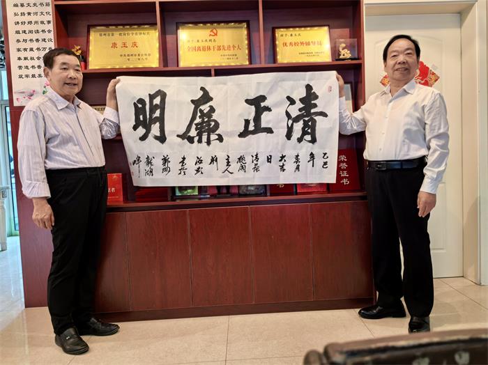 学习结束后,本会为康玉庆顾问赠送书法作品“清正廉明”、“浩然正气”表示感谢,大家一起唱起了《学习雷锋好榜样》。