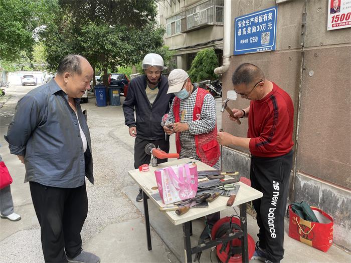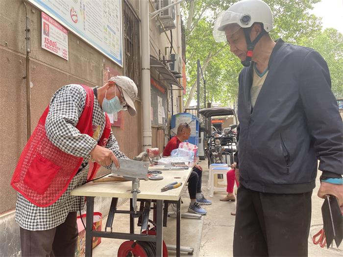 在“五一”国际劳动节来临之际,上街区中心路街道吉祥街社区检修家属院门口上演了一场别开生面的劳动技能志愿服务。4月30日上午,由退休党员、技术标兵组成的志愿服务队,用精湛的技艺为居民们带来了一场“劳动之美”的生动展示。