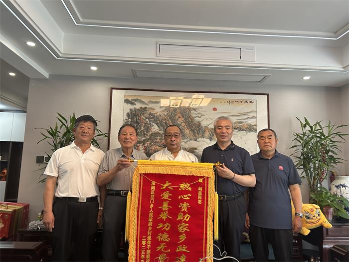 当天,豆门乡村离退休干部联谊会会长楚士保、常务副会长王全军、副会长郭树军、名誉会长郭文锋一行四人,也来到胡昆住处。他们此行,是为了向胡昆表达诚挚的谢意。此前,胡昆得知家乡创建“乡村离退休干部联谊会”,二话不说便转来六千余元启动资金,为联谊会的成立注入了关键动力。联谊会成员为胡昆送上锦旗一面、荣誉证书及特邀证书各一份,这不仅是对他慷慨解囊的嘉奖,更是对他心系家乡情怀的致敬。