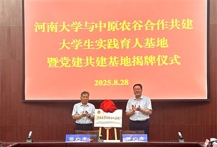 仪式上,杨海峰表示,河南省委、省政府高度重视中原农谷建设,将其作为建设农业强省、保障国家粮食安全的战略工程。中原农谷已汇聚了中国农科院、果蔬园艺作物种质创新与利用全国重点实验室、神农实验室等多个重点实验室,更有多名院士、专家长期在农谷工作,具有一流的平台和育人环境。农谷建有成亩连片的高标准实验基地,汇聚了一批种业企业,都能为大学生实践育人基地高质开展实践保驾护航。他强调,河南大学与中原农谷历来合作紧密,希望同学们能以大学生实践育人基地落地中原农谷为契机,把基地当成“练兵场”,真正走近农谷、了解农谷、建设农谷;也希望河南大学与中原农谷深度携手,共同建设中原农谷,成为校地合作的标杆。