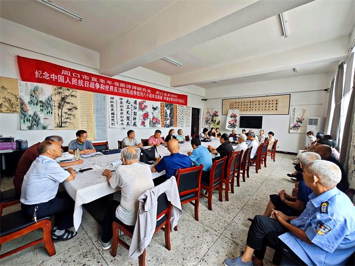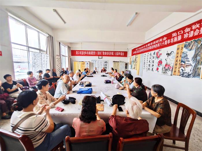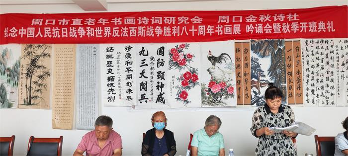 为纪念中国人民抗日战争暨世界反法西斯战争胜利80周年,铭记历史、缅怀先烈,传承和弘扬伟大抗战精神,用笔墨丹青和诗词散曲艺术记录时代发展的壮美画卷,9月5日,周口市直老年书画诗词研究会、周口金秋诗社举办纪念中国人民抗日战争暨世界反法西斯战争胜利八十周年书画展暨吟诵会,同时举行秋季开班典礼活动。举办此次活动旨在深切缅怀革命先烈,弘扬伟大抗战精神,笔墨铸丰碑,铭记抗战历史,传承红色文化,引导广大离退休干部铭记历史、不忘初心,增强使命感,彰显银龄担当。