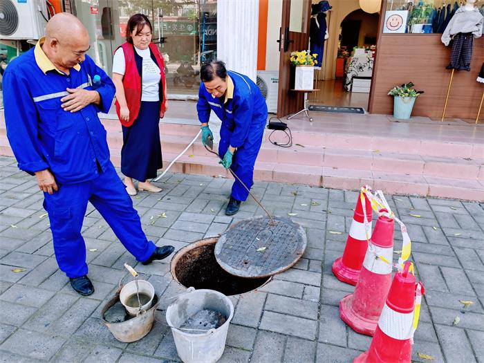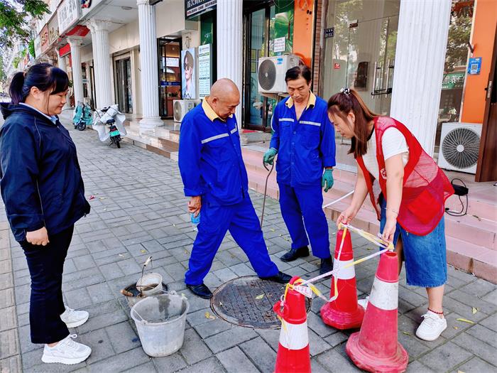 事情源于许昌路一位商户的紧急反馈。由于过往电动车频繁碾压,其门店前的一处井盖处于“摇摆不定”状态,不仅发出刺耳的金属撞击声,更存在车辆侧翻、行人绊倒的安全隐患。接到反映后,社区党总支立即安排人员赶赴现场,经仔细勘查发现,井盖基座因长期受力已出现结构性损坏,若不及时处理,极有可能引发严重事故。