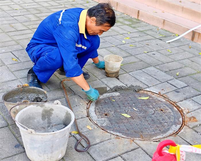 为避免“小隐患”酿成“大祸患”,社区党总支迅速协调物业开展抢修工作。物业维修人员携带水泥、砂石等材料迅速到场,通过重新校准井盖位置、加固周边基座、浇筑水泥固定等一系列工序,经过1个多小时的抢修,原本翘起的井盖便与路面严丝合缝,稳固性大幅提升。考虑到水泥凝固期间的安全风险,社区党总支还在周边设置了反光警示锥,全方位筑牢安全防线。