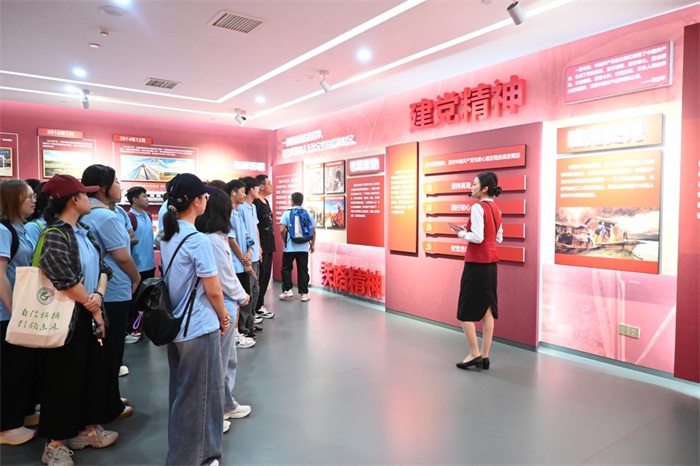 在河南省铁路建设投资集团展厅,讲解员带领学生系统回顾了中国铁路从无到有、从弱到强的奋斗历程,重点学习了铁路系统在党的领导下服务国家战略、保障国民经济发展的辉煌成就。一段段感人至深的铁路红色故事——如“二七”大罢工中工人阶级的强大力量、成昆铁路建设者们的牺牲奉献、高铁自主创新中的科技攻坚,生动诠释了一代代铁路人坚定信念、艰苦奋斗、报效祖国的优良传统。同学们认真学习了伟大建党精神,认识到科学技术是第一生产力的深刻内涵,感受到中国共产党的伟大。