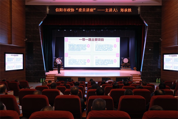 9月18日下午,信阳博物馆报告厅内,信阳市政协委员联络委 “委员之家” 第三季度交流分享活动正在热烈开展。“委员之家” 第三组组长、光山县政协主席李芳军主持活动,市政协委员郑承轶博士带来《不出海就出局 —— “一带一路”倡议下的激情与无奈》专题讲座,部分浉河区政协委员应邀参与。