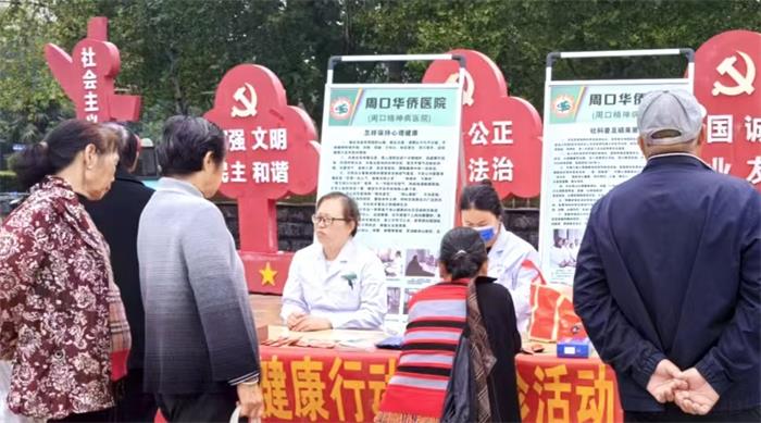 医院精神科主任焦普利带领医院内科、精神科、心理学科专家,到川汇区文化广场开展健康义诊与社科普及宣传活动,为市民送上健康关怀。