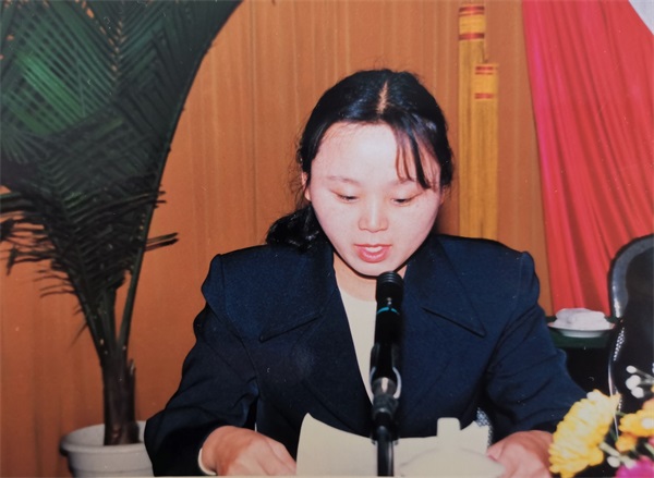 安银花在“热爱新闻事业的模范通讯员蒙标成命名大会”上发言