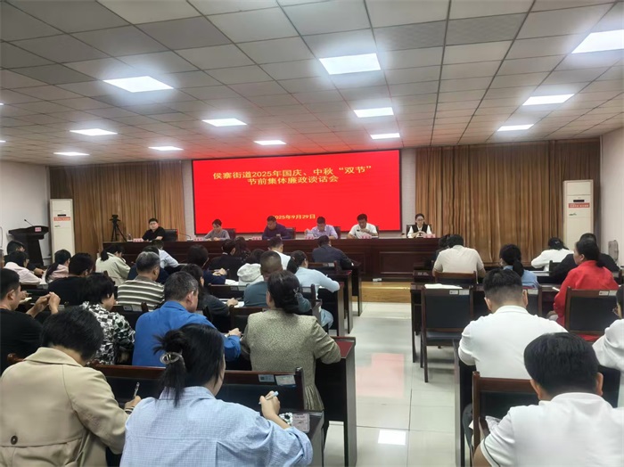 国庆、中秋双节将至,为进一步加强党风廉政建设, 巩固深入贯彻中央八项规定精神学习教育成果,驰而不息纠“四风“树新风,严防“节日腐败”,守牢“廉洁关”。9月29日下午,郑州市二七区侯寨街道召开2025年国庆、中秋“双节”节前集体廉政谈话会,全体领导干部、各村(社区)主要负责人参会,街道党工委书记张庆华主持会议并讲话。