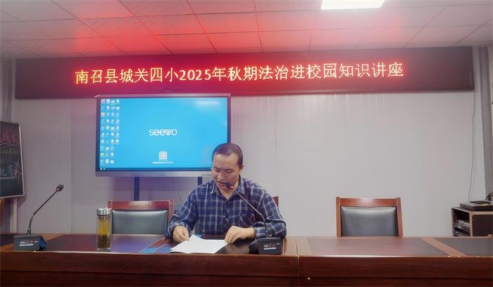 2025年 9月 29日下午,南召县城关镇第四完全小学的校园里洋溢着浓厚的学法氛围学校法治副校长田付三同志以“知法律于心、守法律于行”为主题,为全体学生带来一场兼具专业性与趣味性的法治教育课,用贴近生活的讲解为孩子们筑起一道“法律安全防线”。