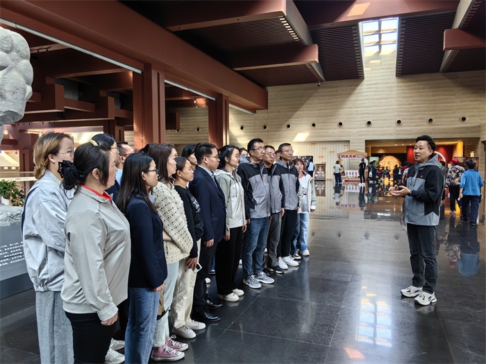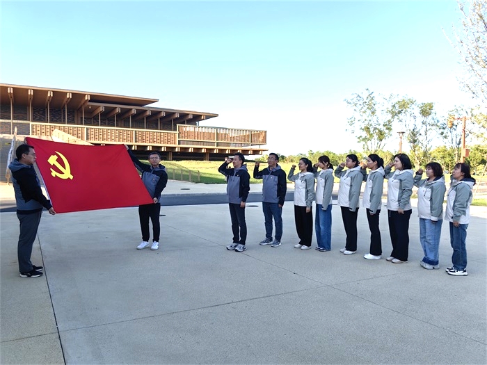 在馆前,党员代表整齐列队,面向鲜红党旗重温入党誓词,铿锵有力的誓言回荡在遗址之上,既强化了党员的身份意识与责任担当,更让初心使命在历史文化的浸润中愈发坚定。活动最后,党员代表结合参观感受与工作实际,围绕“历史文化精神融入教育教学”“以文化自信推动党建工作创新” 等主题依次发言,大家在交流中碰撞思想、凝聚共识,为后续将历史文化养分转化为教育教学提质与党建工作增效的实际行动筑牢基础。