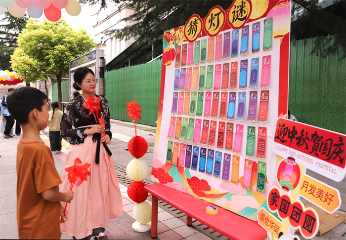 表演活动结束后,韩富安宣布游园活动开幕。紧接着大家一起来到游园活动现场的摊位前,参加庆国庆迎中秋——好运乒乓球、玉兔套圈圈、诗词飞花令、猜灯谜等活动。