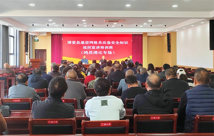 10月14日,由县应急管理局组织举办的全县基层网格员应急安全知识巡回宣讲培训班首班在鸿昌街道九街社区二楼会议室开讲,来自鸿昌街道、清化镇街道的10个社区、36个村的100余名基层网格员参加培训。