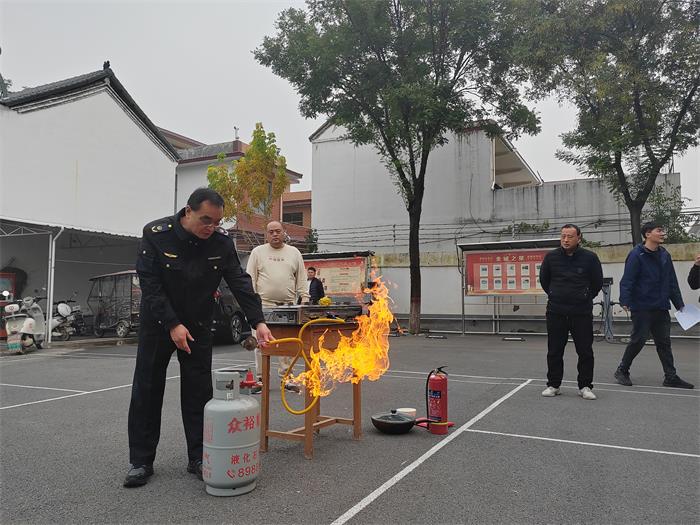 县应急管理局执法人员温长明现场演示怎样安全使用燃气、燃气泄漏处置、油锅着火扑灭、灭火器使用等常用安全知识。