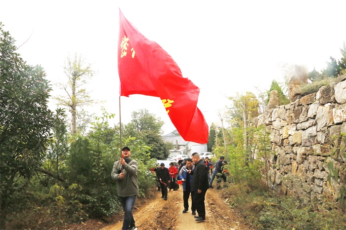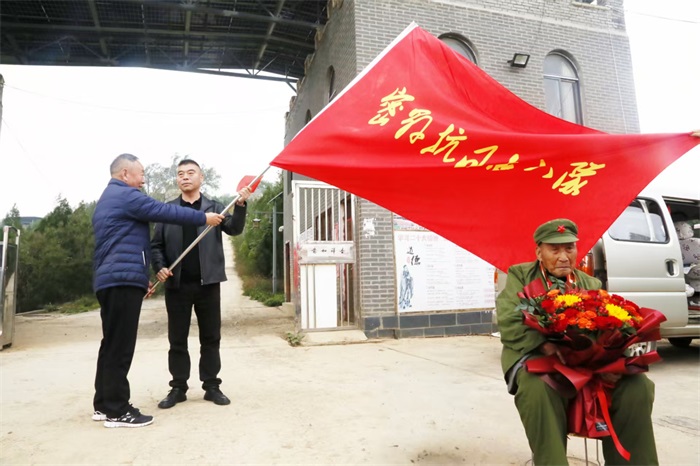 郑冲村党支部代表向102岁的抗美援朝老英雄金国太敬献鲜花,全体人员与老英雄合影留念,定格下这一凝聚敬意与温情的珍贵时刻。
