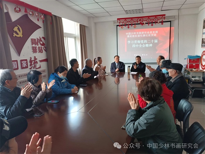 2025年11月3日下午,中国少林书画研究会党支部和文化共建单位郑州市秦岭街道杜康社区党委联合组织召开了《学习贯彻党的二十届四中全会精神》宣讲辅导会。