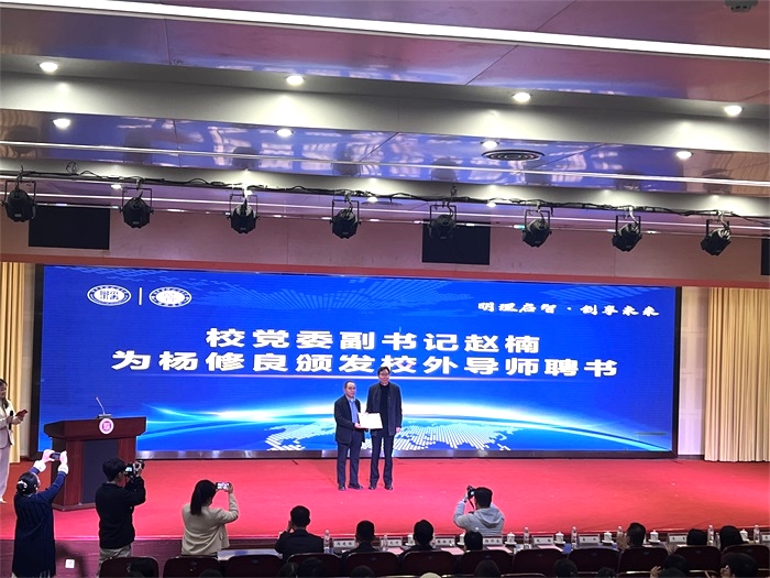 校党委副书记赵楠代表校领导向著名书画家杨修良先生颁发了校外导师聘书。