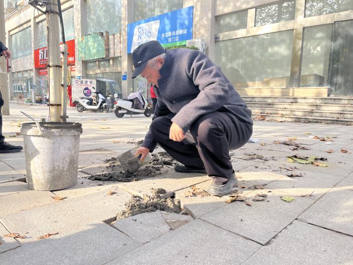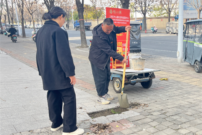 他没有等待、没有依赖,而是迅速自发组织起力量。他挨家挨户地动员,向居民们讲述路面修复的重要性和紧迫性,激发起大家内心深处对社区的热爱和责任感。在他的号召下,当天下午,志愿者们纷纷响应,大家怀着“社区是我家,维护靠大家”的情怀,齐心协力地投入到路面修复工作中。