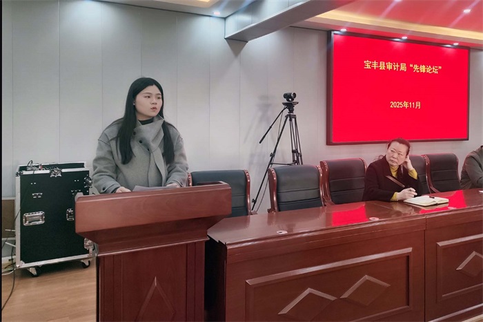 “我今天汇报的题目是《审计路上的冷暖印记》……“我今天汇报的题目是《“小汇总”提升审计“大质效”》……”12月10日,在宝丰县审计局“主题党日”活动会上,“我的审计故事”和“审计先锋课堂”分享交流活动正在进行。