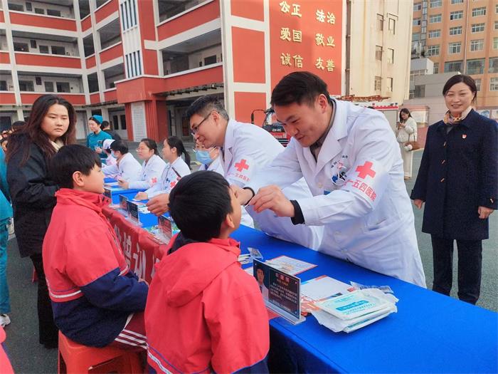 宣讲环节结束后,展台体验区迅速成为校园里最热闹的地方。信阳一五四医院的义诊展台前,医护人员耐心地为孩子们检查视力、口腔,负责眼科的赵医生温柔地叮嘱道:“平时要少看电子产品,多做眼保健操”,围在展台前的孩子们听得格外仔细,不时举手询问健康小问题。
