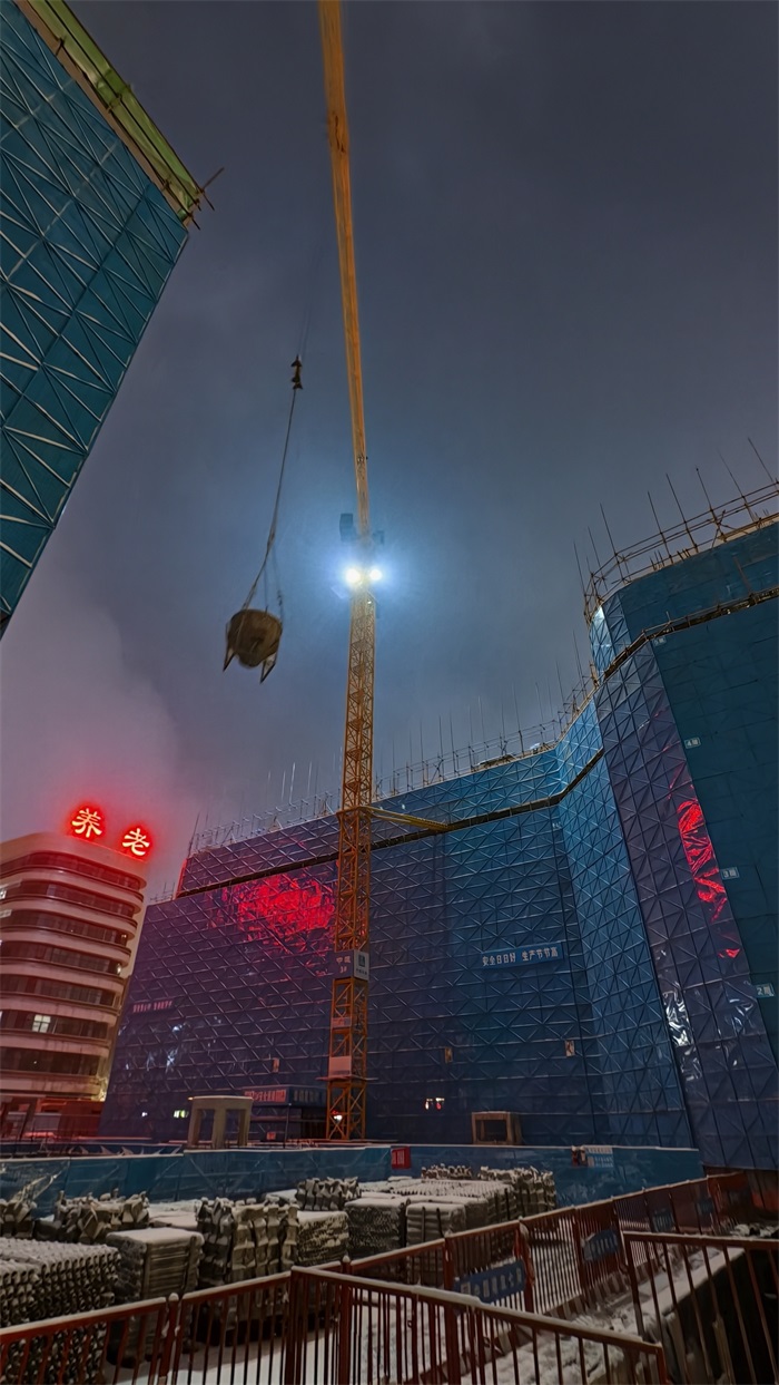 在鹤壁仁康医院项目,为抢在12月11日晚8点大风、雨雪前锋抵达前完成关键楼板浇筑,项目团队倒排工期至小时。混凝土搅拌站提前预热骨料,测温员全程记录,确保入模温度稳定在7℃以上,严格高于5℃的规范要求。经过30余小时连续作业,当最后一车混凝土完成浇筑、保温层随即严密覆盖时,整个工序比天气“窗口期”的安全底线提前了整整7小时。 这宝贵的7小时,为应对任何突发状况留出了充足余地,更彰显了科学组织下的 “从容决胜”。