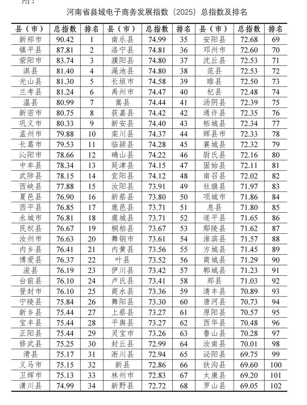 河南省作为经济大省、农业大省和人口大省,县域电商是推动乡村振兴、促进消费升级、拉动有效投资、实现产业转型的重要抓手。本次县域电商发展指数的编制,紧密对接国家乡村振兴战略部署,深度契合河南发展实际,通过科学构建评估体系、系统研判县域电商发展水平,为全省电商领域政策制定、资源精准配置、市场规范引导提供了权威数据支撑,助力形成政府引导、企业主体、社会参与的县域电商协同发展新格局。