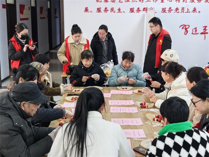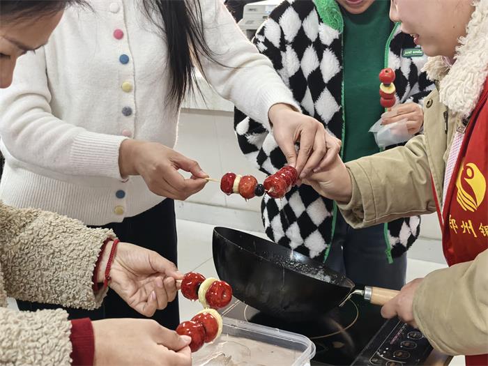 “自己做的糖葫芦,就是格外甜啊!”从精心熬制金黄的糖稀,到将串好的山楂、水果在糖浆中巧妙一蘸、轻盈一转,居民们全神贯注,边学边做。顷刻间,一串串晶莹剔透、香甜诱人的糖葫芦相继“诞生”。居民们举起这份亲手创造的甜蜜成果,相互展示、合影留念,欢声笑语与糖香交织,汇成最动人的迎新乐章。