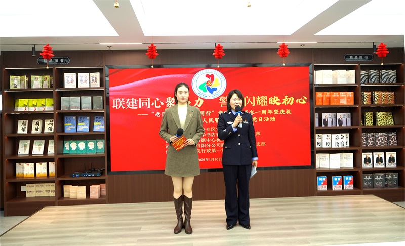 1月10日上午,信阳“老区先锋★五心同行”党建联建成员单位领导及党员代表50余人齐聚市新华书店阅汇书城,举行“老区先锋★五心同行”党建联建成立一周年暨庆祝第六个中国人民警察节主题党日活动。