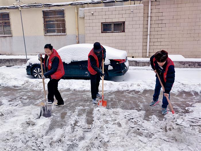寒风凛冽中,党员志愿者们挺身而出、冲锋在前,他们手持铁锹、扫帚,分工协作,对社区主干道、单元门坡道等关键区域展开集中清理。铁锹铲冰的撞击声,扫帚扫雪的摩挲声,交织成一曲冬日里的奉献之歌。经过数小时的艰苦奋战,辖区内主要通行路段的积雪积冰被全部清除,一条条安全通畅的“暖心路”呈现在居民眼前。