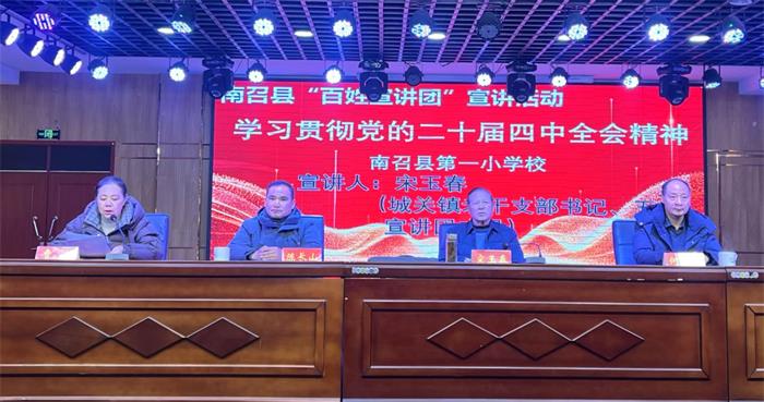 2026日年1月23日下午,河南省南召县“百姓宣讲团”走进南召县第一小学,开展“学习贯彻党的二十届四中全会精神”专题宣讲活动,让全会精神与教育发展、学生成长深度融合,让党的关怀和创新理论在校园滋润少年。该活动由学校党支部书记贾真主持并作总结讲话,城关镇党建办、中心校、在校六年级师生200余人聆听宣讲。