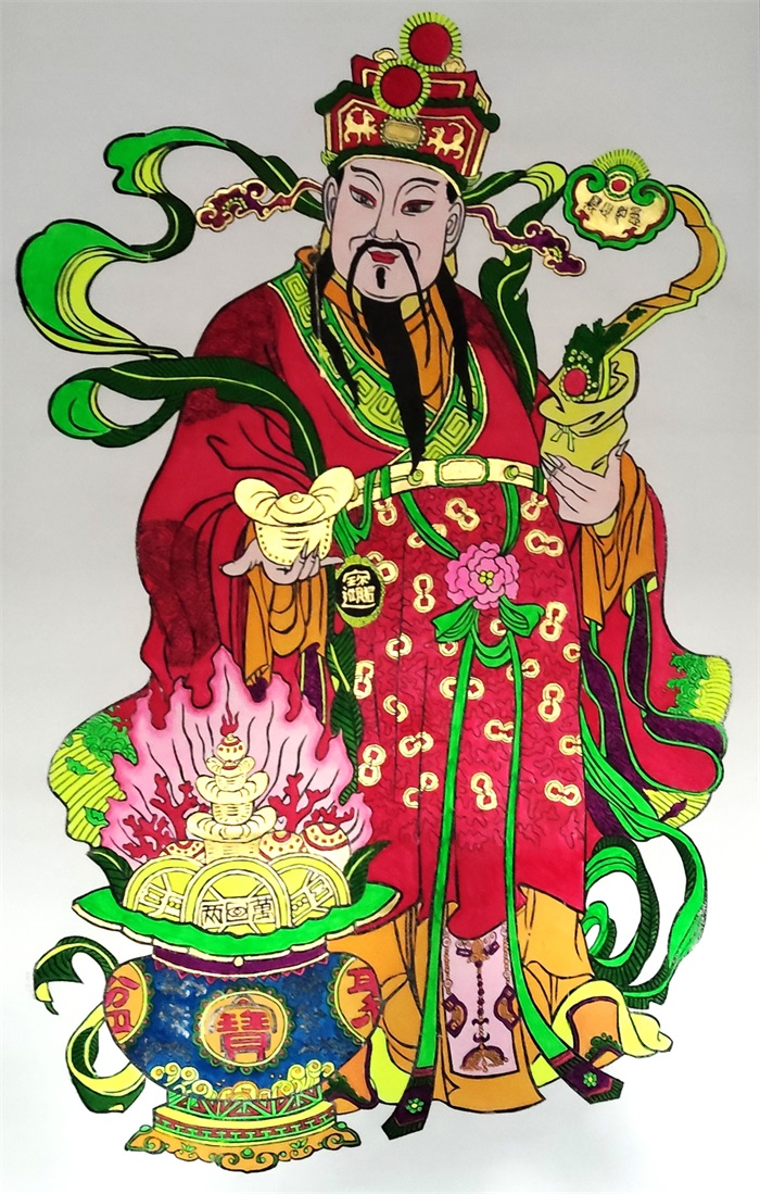 彼时的木版年画,是百姓家家户户过年的“标配”,没有大型印刷机的年代,手工雕刻、手工印刷的木版年画,是承载美好祈愿的最佳载体。周家口的匠人抓住这一机遇,在传承传统技艺的基础上,结合中原百姓的审美喜好,不断丰富题材、精进工艺,让年画既保留了传统木版年画的古朴韵味,又融入了豫东地区的乡土风情。从最初的门神、灶神,逐渐拓展到福禄寿星、五子登科、和合二仙、天地全神、六畜兴旺等题材,每一幅年画都对应着百姓的生活期盼:贴门神御凶求安,贴灶神祈福纳祥,贴五谷丰登盼庄稼丰收,贴连年有余求生活富足,贴童子献寿祝长辈安康,这些题材深深植根于民间生活,也让周家口木版年画成为百姓精神生活的重要组成部分。