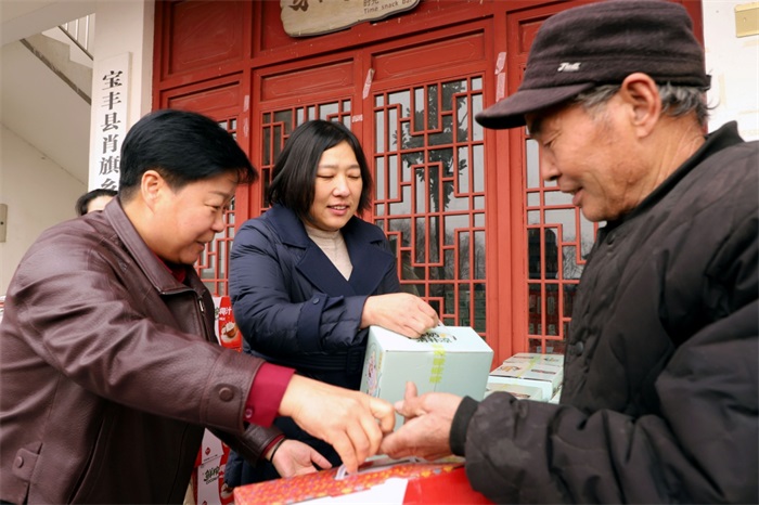 情系桑梓,敬老爱亲。2月10日上午,农历乙巳年腊月二十三,宝丰县肖旗乡韩店村和石桥镇邢庄村,处处洋溢着迎新年的欢乐气氛。两个村70岁以上的老人纷纷走出家门,来到指定点,领取由爱心人士的褚羿为大家送来的年货。