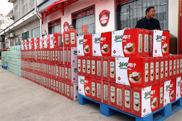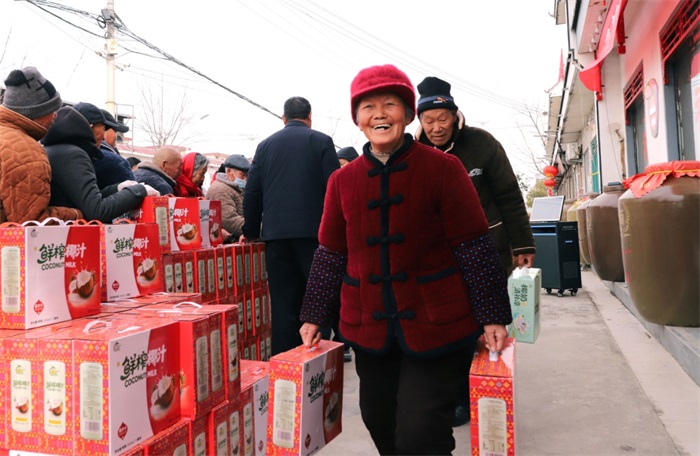 在宝丰县肖旗乡村唢呐文化产业园年货发放现场,韩店村71岁的王平站老人,手提着椰奶清补凉和鲜榨椰汁,满脸笑容地说:“人家年轻时出外创业拼打,现在回来为我们送回了年货,这种不忘根的,孝敬老人的做法,让我们感动,我们为村里村出了这样优秀人才感到自豪!”