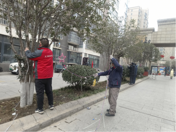 为烘托浓厚节日氛围,小区主干道、公共活动区域陆续挂起红灯笼、彩灯及各式装饰。夜幕降临,灯火璀璨,年味扑面而来。“一出楼门就看到红彤彤的灯笼,彩灯也都亮起来了,感觉整个小区又亮堂又喜庆,心情一下子就好了!”居民赵先生傍晚散步时,对小区的布置赞不绝口。