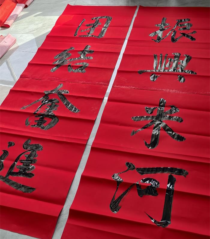 活动现场,墨香袅袅沁人心脾,欢声笑语暖意融融,处处洋溢着浓浓的年味与温情。书画家们凝神静气、挥毫落墨,行书的流畅洒脱、楷书的端庄工整、草书的奔放灵动,多种书体各展风姿、相得益彰;“家和万事兴”“国泰民安”“团结奋进”“振兴米河”等吉祥词句跃然纸上、力透纸背。一幅幅寓意美好、笔力遒劲的春联,一张张笔墨饱满、喜庆吉祥的福字,不仅承载着新春的美好期许,更让村民们足不出村,便近距离触摸到中华优秀传统文化的精髓与魅力,在墨香浸润中感受文化的温度。