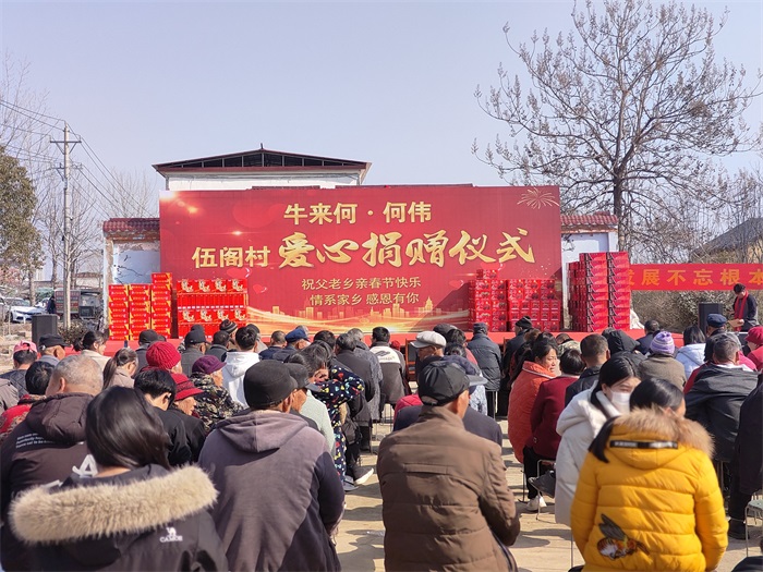初春的寒意尚未褪去,但正阳县傅寨乡伍阁村的文化广场上,早已是暖流涌动、激情澎湃。2月13日下午,一场以“情系公益,大爱无疆”为主题的爱心捐赠仪式在这里震撼上演。这不仅是一次物资的交接,更是一场游子赤诚之心与故土深情的盛大重逢,是乡村振兴画卷中浓墨重彩的一笔。