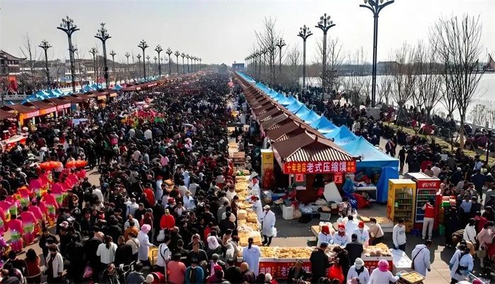 皇家御祭,彰显着太昊陵的正统地位与至尊荣耀;民间朝祖,更让信仰的薪火绵延千年,生生不息,成为太昊陵最鲜活、最动人的沧桑印记。每年农历二月初二至三月初三,为期一个月的太昊陵古庙会,是中国最古老、规模最大、历时最长的民间庙会,被誉为“天下第一庙会”。2008年,庙会单日参拜人数达82.5万,被载入吉尼斯世界纪录,成为华夏民间信仰的盛大狂欢,是太昊陵千年香火最生动的见证。