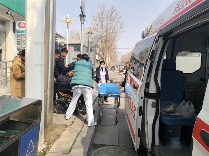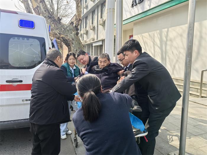 宝丰县妇幼保健院的救护车抵达现场后,急救人员初步判断为心源性休克,病情危急,必须立刻带回医院进行抢救性治疗。为确保转移过程中客户的安全,张主任迅速召集厅堂内的其他男同事,大家用银行备用轮椅,通过安全通道小心翼翼地协助医护人员将客户平稳地抬上担架,送上救护车,为后续的医疗救治赢得了宝贵的时间。