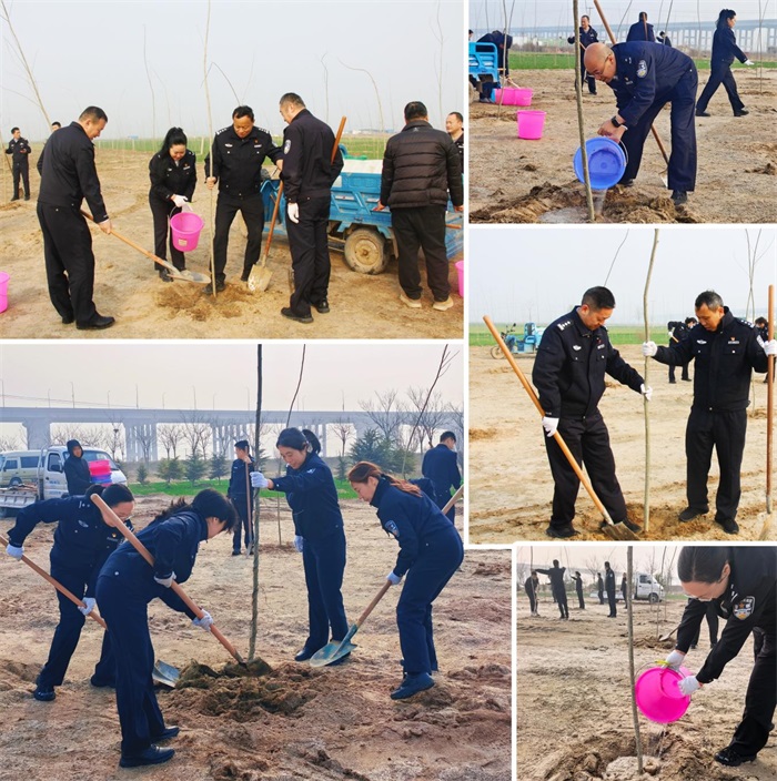 动员过后,全体民警热情饱满、迅速投入植树活动。大家分组协作、默契配合,挥锹铲土、扶苗定根、培土压实、引水浇灌,每一道工序严谨规范、井然有序。现场党旗猎猎、干劲昂扬,欢声笑语与春日和风相融,忙碌身影与壮阔黄河相映,勾勒出一幅党建引领、警民同心、生态共筑的春日实干画卷。同志们以双手播撒绿色希望,以汗水浇灌成长根基,充分彰显了监管队伍团结奋进、昂扬向上、敢打必胜的过硬作风与精神风貌。