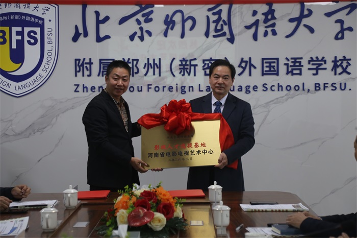 春风和煦,龙耀新程。2026年3月20日(农历二月初二),在寓意鸿运当头、事业腾飞的吉祥日子里,河南电影电视艺术中心与北京外国语大学附属郑州外国语学校战略合作签约授牌仪式隆重举行。双方正式达成长期全面战略合作,共同推进艺术教育与基础教育深度融合,打造专业化、系统化的艺术人才培养新模式。