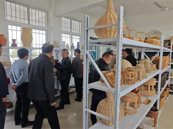 “咱们车间现在有多少工人?产品主要销往哪?”“柳编原料从哪来?怎么保证品质?”观摩团成员边走边看、边问边记,对白衣堂村“企业+农户+订单”的运营模式、“传统技艺+电商直播”的销售路径表现出浓厚兴趣。