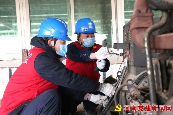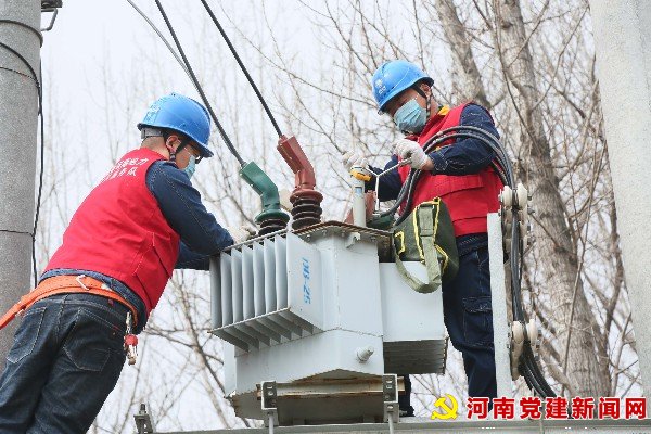 2020年3月3日,在汝阳县上店镇新庄村,上店供电所党员服务队在维修供电设备,为农业灌溉提供有力保障。