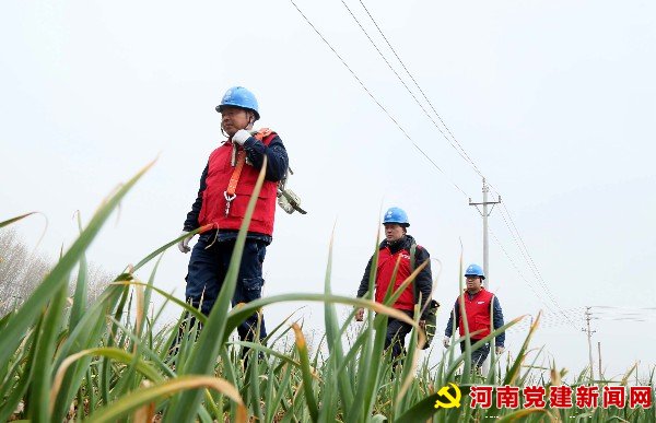 2020年3月3日,汝阳县上店供电所党员服务队在农田电力线路巡查,保障农村电力畅通。(康红军 窦亚珂 摄)