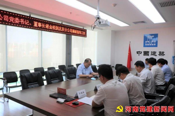 5月20日,中建七局建装公司党委书记、董事长谢金松到北京分公司总部、项目部调研指导工作,并主持召开座谈会,指思路、谋发展。北京分公司班子成员姚志伟、介冰、郭军、王跃文、崔攀峰、乔颜彬、王鹏、李琦参加调研、汇报工作。