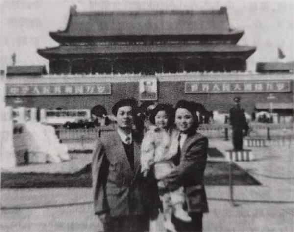 这是蒙标成生前在天安门广场和妻子安银花及女儿蒙晓丹留下的唯一“全家福”