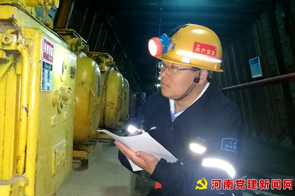 图为该矿基层区队管理人员正在对高压开关运行情况进行检查。