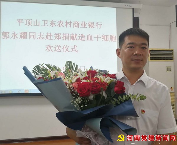 上午10时许,郭永耀在妻子和市红十字会志愿者陪同下,启程前往郑州。平顶山市红十字会专职副会长洪毅说,郭永耀是平顶山市志愿捐献造血干细胞的第49人,也是全市金融系统的第一位捐献者。(杨有为 马杰)