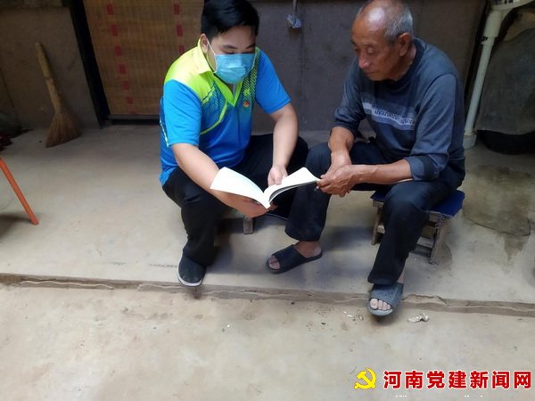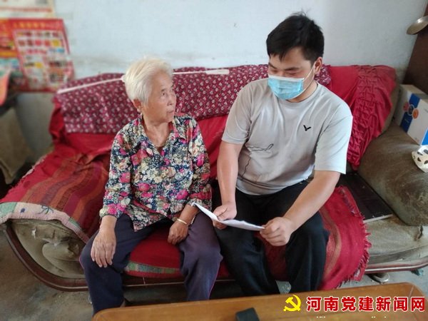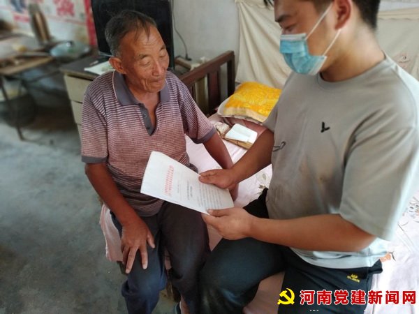 ▲聂升君同学为建档立卡贫困户宣传的政策