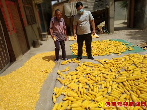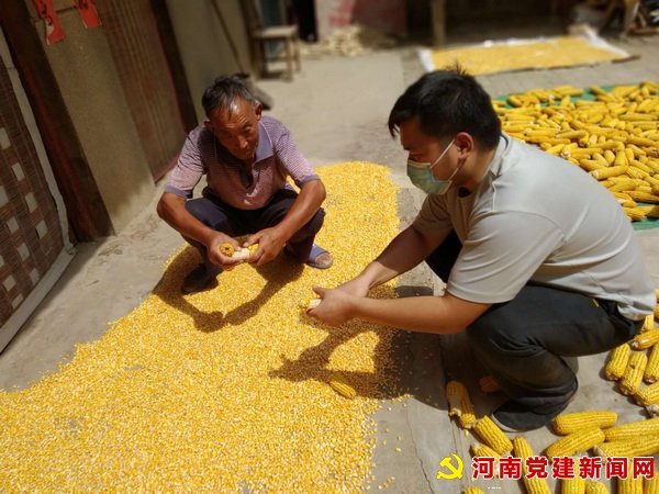 ▲ 聂升君帮助困难群众身体不太好的张金勇收玉米,摊晒玉米,玉米脱粒